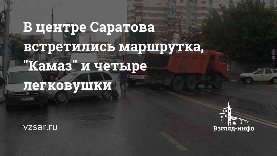 В центре Саратова встретились маршрутка, "Камаз" и четыре легковушки