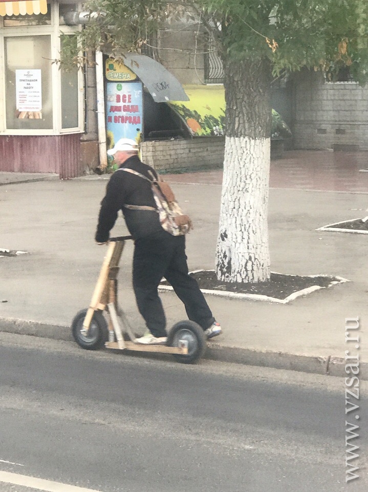 Жители Саратова заметили немолодого мужчину, разъезжающего по Астраханской на самодельном деревянном самокате. Своими эмоциями они делятся на странице сообщества "Типичный Саратов" в соцсети "ВКонтакте".