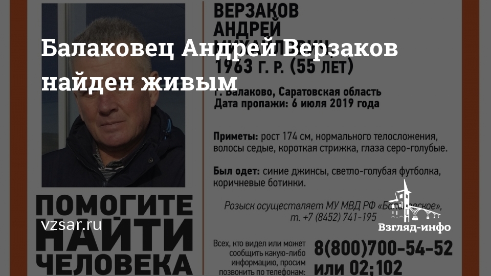 Балаковец Андрей Верзаков найден живым