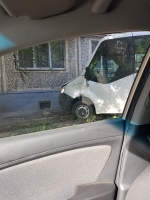 Выехав с территории автостоянки, "герои" добрались недалеко - не справившись с управлением, свернули на бордюр и врезались с стену пятиэтажного дома.