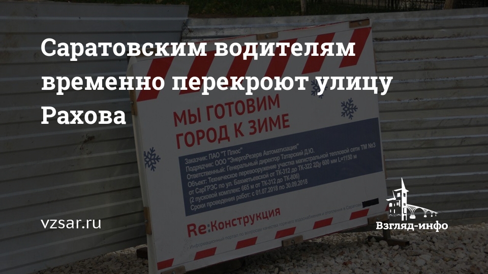 Сегодня в Саратове на весь день частично закрывается проезд автомобилей по улице Рахова. Об этом сообщает пресс-служба ПАО "Т Плюс".