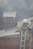 По данным ведомства, в 5.25 на пульт "01" поступил сигнал о возгорании двухэтажного дома № 4 по улице Дзержинского. Огонь охватил площадь в 40 кв. метров. На тушение выезжали 4 единицы техники и 23 человека личного состава.