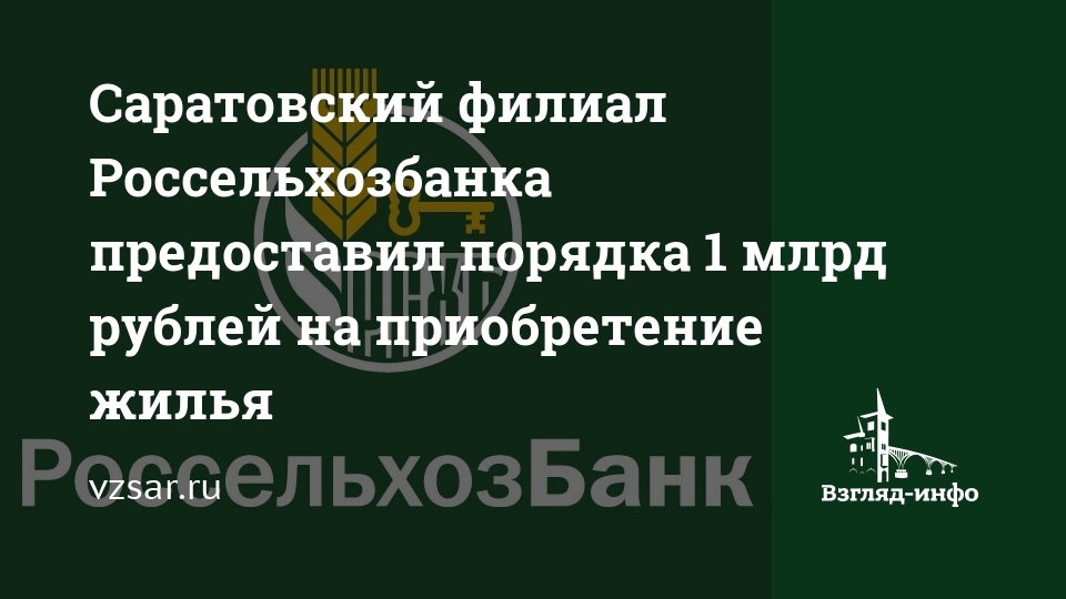 Саратовский филиал Россельхозбанка предоставил порядка 1 млрд рублей на приобретение жилья