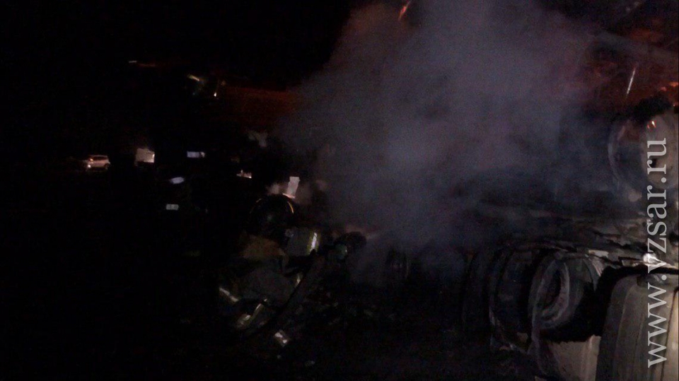 Согласно данным сайта "ЧП Саратов", в ДТП погибли 32-летняя женщина и 33-летний мужчина, а 10 летняя девочка получила серьезные ожоги. Также уточняется, что Volvo вез на трале два грузовика "Урал".