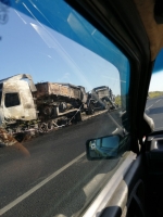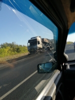 В 21.30 на 332 километре автодороги Сызрань-Саратов-Волгоград - между Рыбушками и Александровкой - столкнулись большегруз "Volvo" с полуприцепом и "Honda Accord". После столкновения оба автомобиля сгорели.