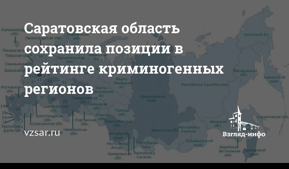 Саратовская область не изменила своей позиции в рейтинге криминогенных регионов. К соответствующим выводам пришли эксперты Института региональных проблем, которые подготовили четвертый выпуск рейтинга криминогенности субъектов за май.