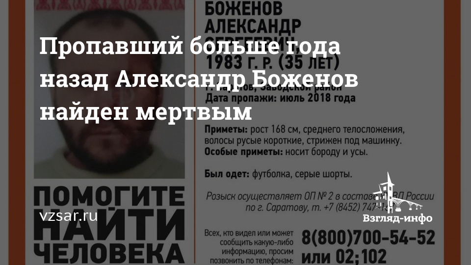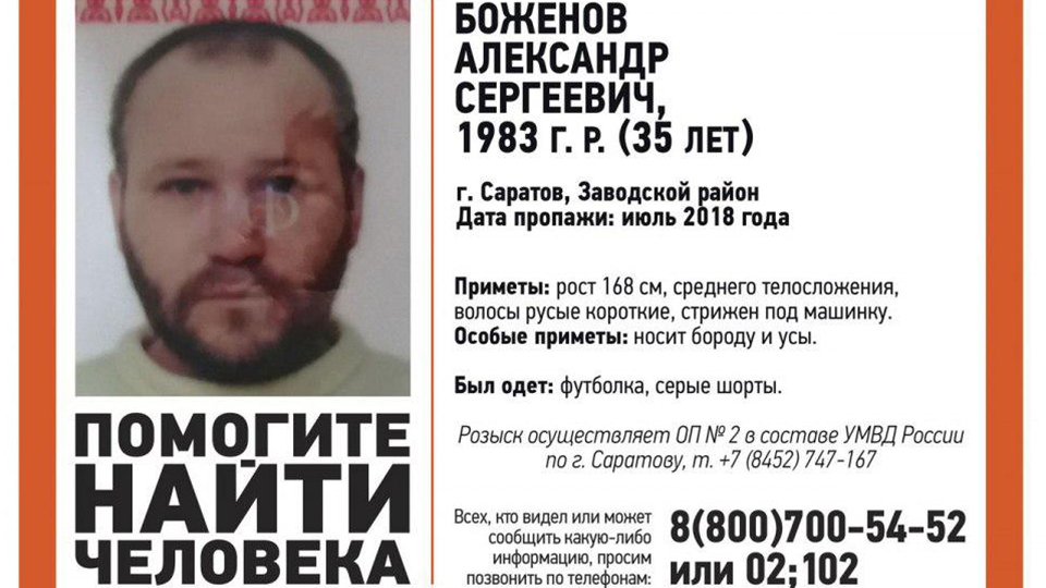 Пропавший в Заводском районе Саратова 35-летний Александр Боженов найден мертвым. Об этом сообщают волонтеры сообщества "Лиза Алерт Саратов" в социальной сети "ВКонтакте".