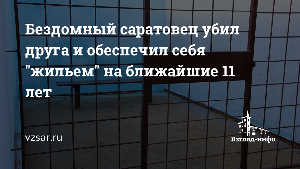 Бездомный саратовец убил друга и обеспечил себя "жильем" на ближайшие 11 лет