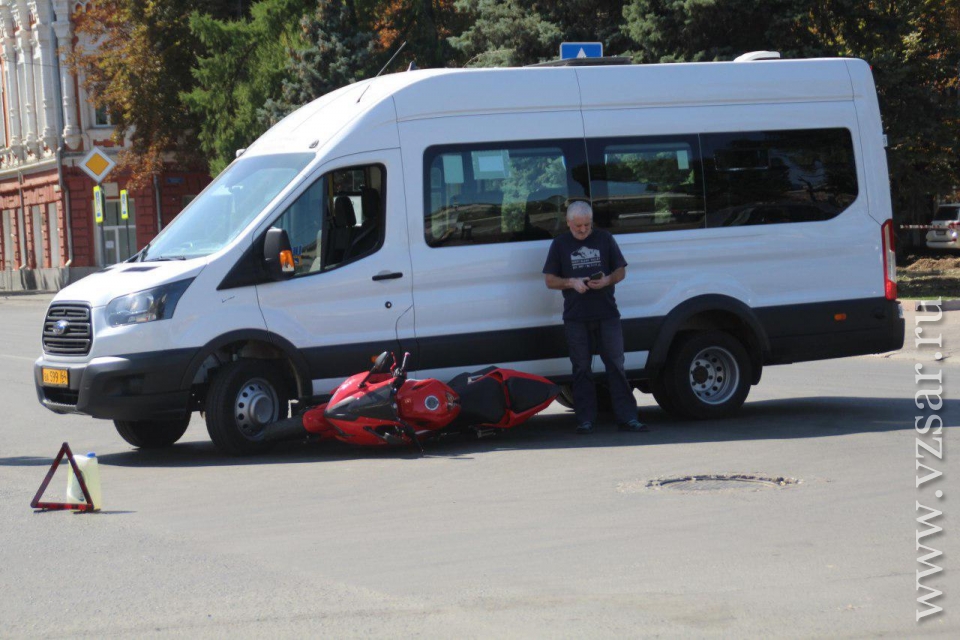 Около часа назад в центре Саратова маршрутка сбила мотоциклистку.