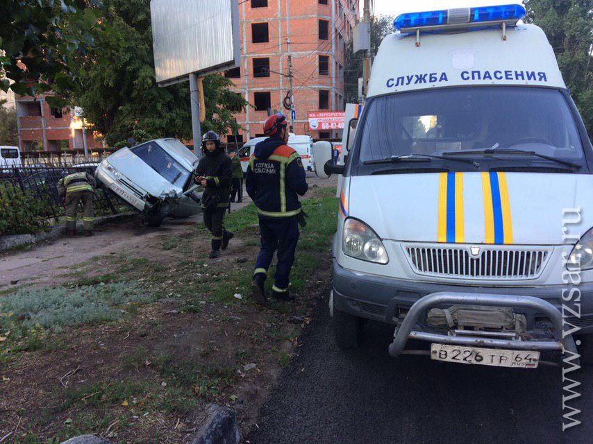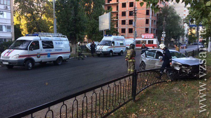 Авария произошла в семь утра на пересечении улиц Новоузенской и Астраханской. Столкнулись "ВАЗ-2111" и "Шевроле Лачетти". От удара машины влетели в ограждения сквера и автостоянки, установленные по обе стороны свежеасфальтированной дороги.