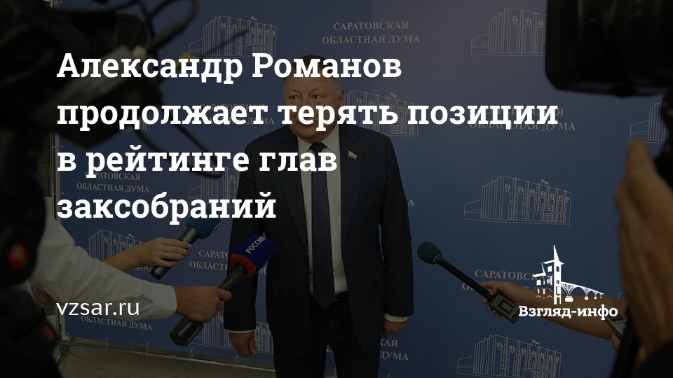 В августе спикер Саратовской областной думы Александр Романов продолжил терять позиции в медиарейтинге глав законодательных органов субъектов РФ. Соответствующие данные обнародовала сегодня компания "Медиалогия".