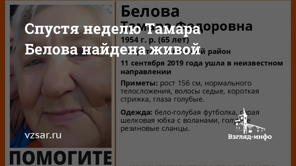 Спустя неделю Тамара Белова найдена живой
