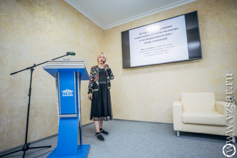 Одним из спикеров на форуме выступила директор Института дополнительного профессионального образования СГЮА, директор Всероссийского центра методического обеспечения деятельности комиссий по делам несовершеннолетних и защиты их прав Екатерина Ильгова, которая рассказала о взаимодействии органов и учреждений системы профилактики безнадзорности и правонарушений среди подростков.