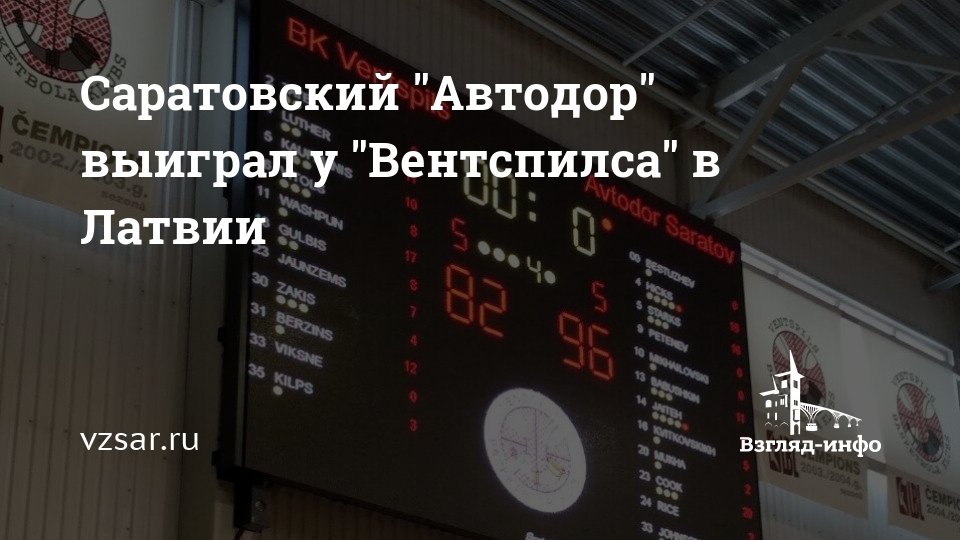 Только что в Вентспилсе (Латвия) баскетболисты саратовского "Автодора" выиграли у местного клуба со счетом 96:82.