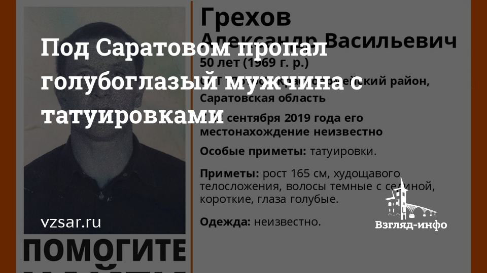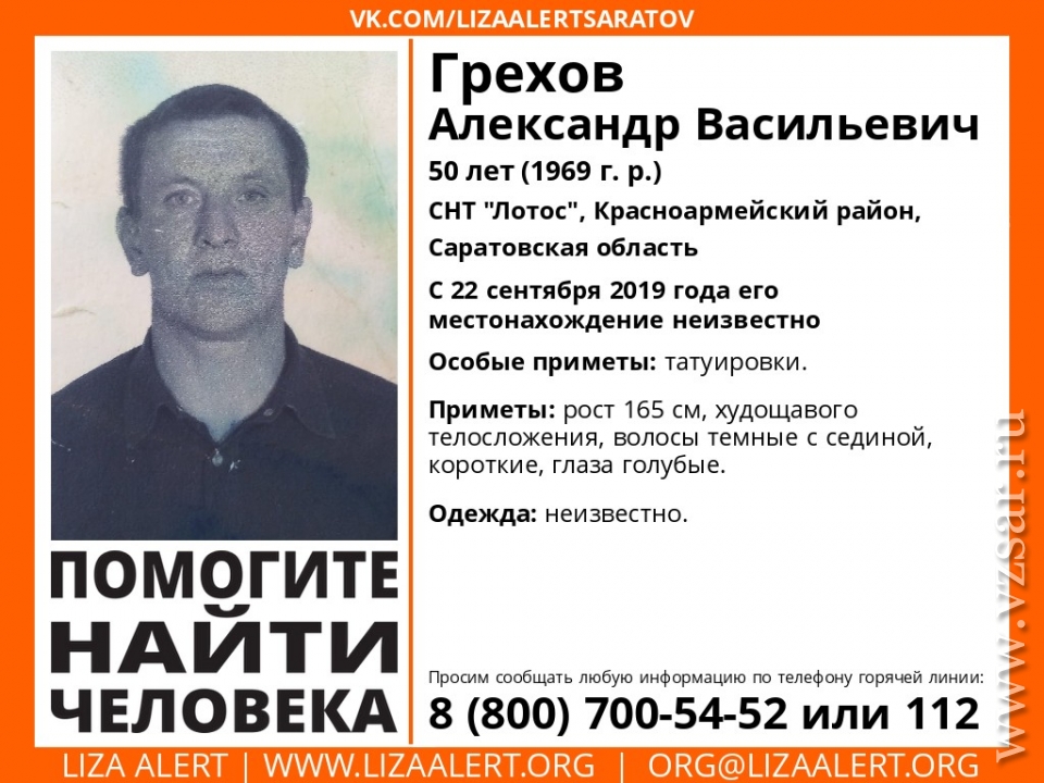 Всех, кому известно, где находится Грехов, просят обращаться по телефонам 8-800-700-54-52 или 112.