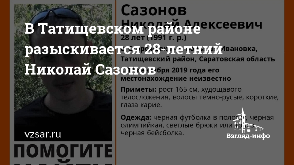 В Татищевском районе Саратовской области пропал без вести 28-летний Николай Сазонов. Об этом информируют волонтеры "Лиза Алерт Саратов" в соцсети "ВКонтакте".