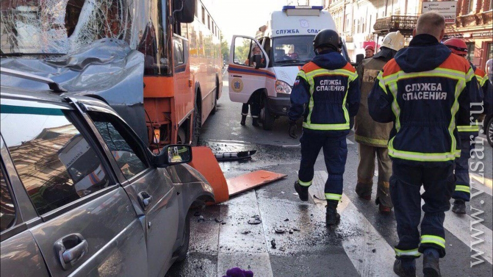 В результате дорожно-транспортного происшествия женщина получила травмы, несовместимые с жизнью, и скончалась на месте ДТП. Остальным пассажирам общественного транспорта была оказана медицинская помощь", - отмечается в сообщении главка.