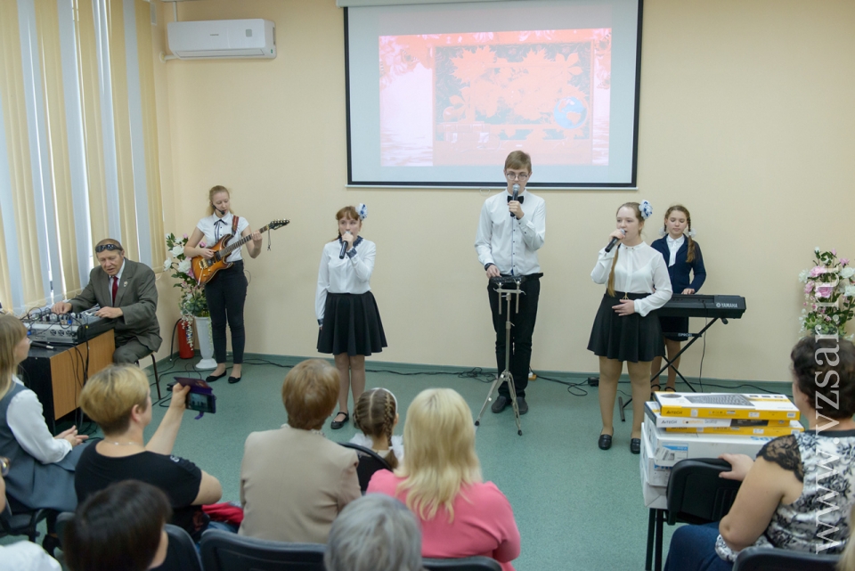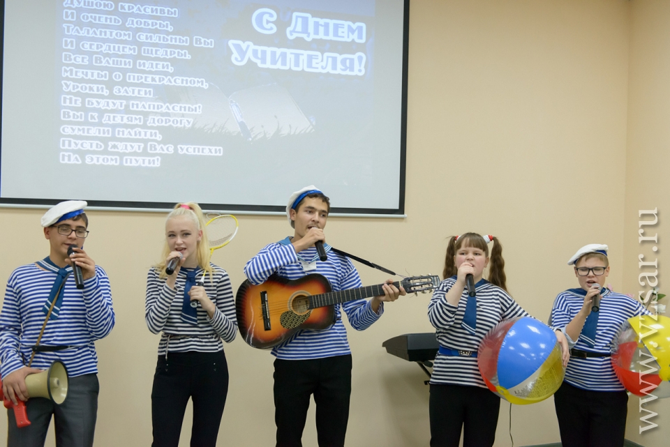В рамках торжественного мероприятия, приуроченного к профессиональному празднику педагогического коллектива, учащиеся подготовили праздничный концерт. Со сцены ребята поблагодарили коллектив ООО "Газпром трансгаз Саратов" за подарки.