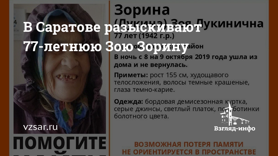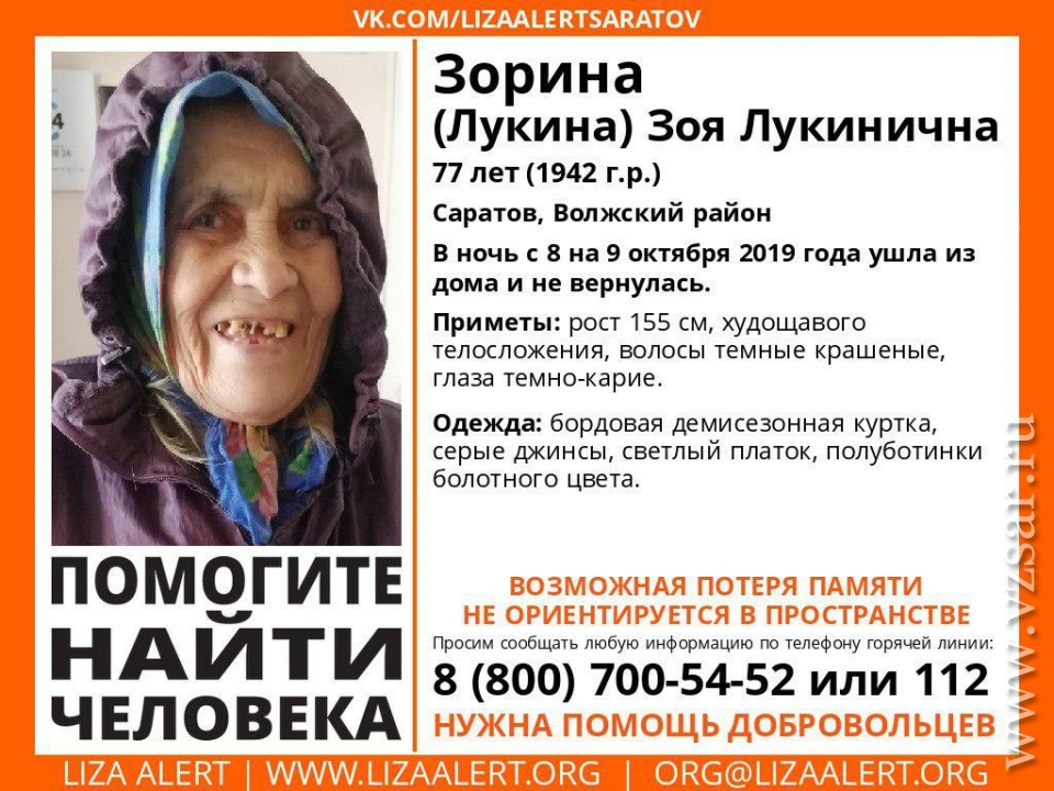 В Волжском районе Саратова этой ночью ушла из дома и пропала 77-летняя Зоя Зорина (Лукина). Об этом сообщают волонтеры "Лиза Алерт Саратов" в соцсети "ВКонтакте".