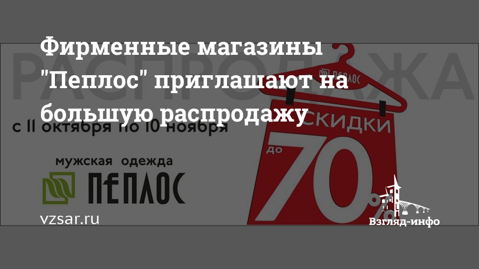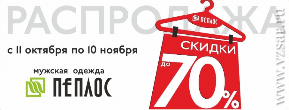 В Саратове и Энгельсе в фирменных магазинах мужской и детской одежды "Пеплос" пройдет большая распродажа. С 11 октября по 10 ноября покупателей ждут скидки до 70%.