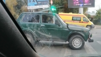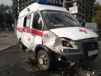 По предварительным данным, в 7.00 на пересечении улиц Большая Садовая и Шелковичная столкнулись "Нива" и неотложка (марки "Газель").