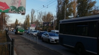 "На пересечении 50 лет Октября и 2-го Красноармейского тупика у остановки "Жиркомбинат" столкнулись автобус 11-го маршрута и 5-й троллейбус. Это привело к серьезному затору.