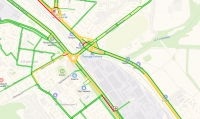 Сервис "Яндекс.Пробки" окрасил данный участок в бордовый цвет. Транспорт в сторону центра едет со скоростью, не превышающей 5 км/ч. Ухудшает положение и авария в районе "Стрелки".