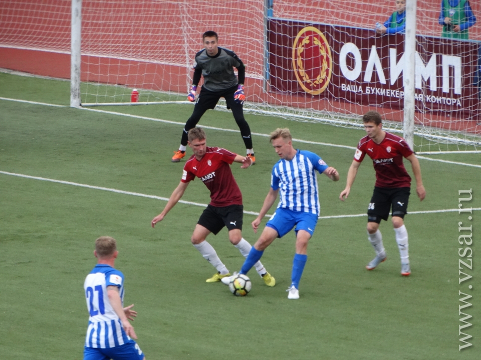 Первыми в этом матче отличились хозяева поля – на 16-й минуте точный дальний удар нанес Александр Столяренко. На 38-й минуте в ворота саратовцев за попадание мяча в руку в штрафной площади был назначен пенальти, и счет сравнялся – 1:1.