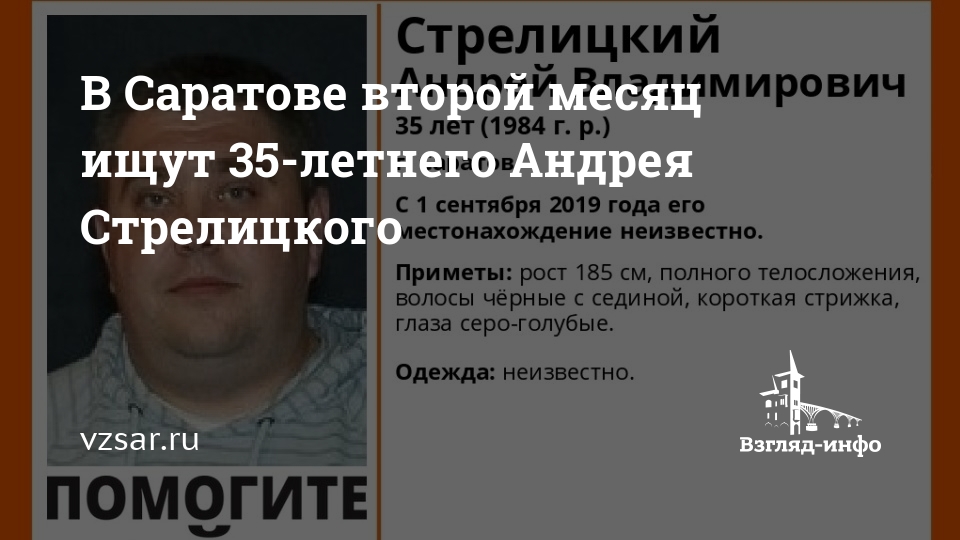В Саратове почти два месяца разыскивается 35-летний Андрей Стрелицкий. Об этом сообщают волонтеры "Лиза Алерт Саратов" в социальной сети "ВКонтакте".