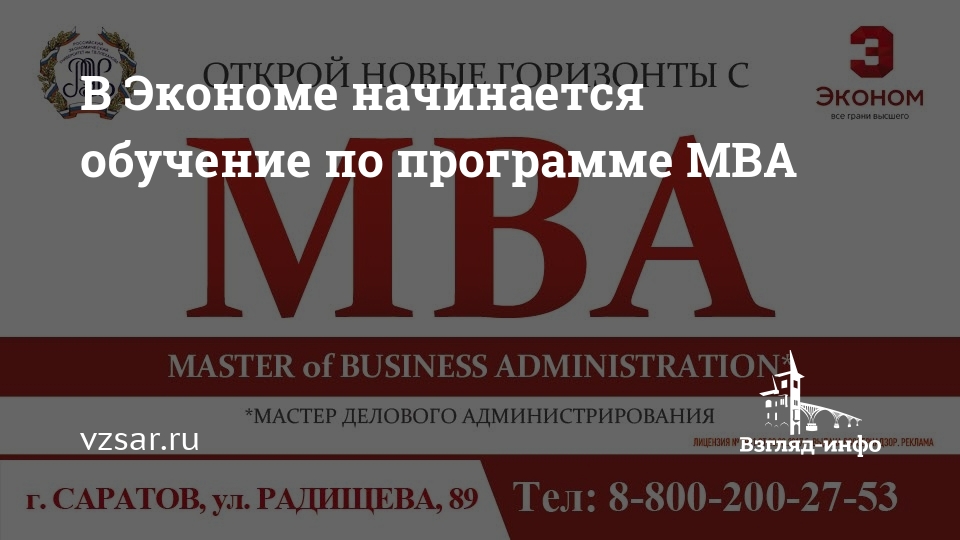 Более подробно узнать о программе МВА и оставить заявку можно по телефонам: 8-800-200-27-53 (звонок со всех телефонов бесплатный); (8452) 211–804, 211-879 или по эл. почте econom-fdpo@mail.ru