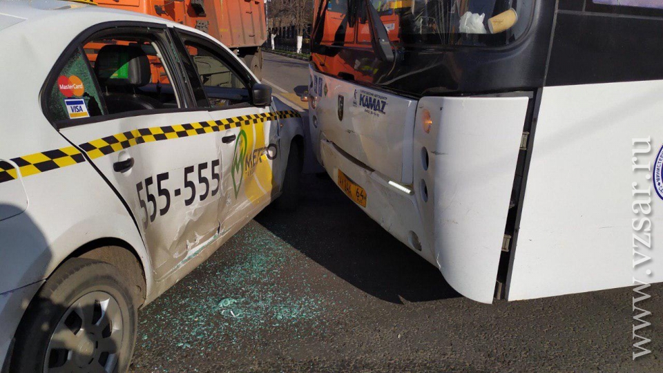 По предварительным данным, на перекрестке Московской и Аткарской водитель такси "Метро" ехал по второстепенной дороге и не уступил энгельсскому автобусу маршрута № 284А.