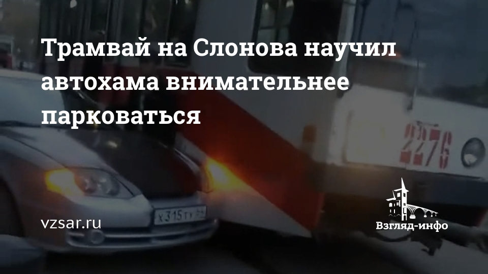 Вчера в центре Саратова на улице Слонова неудачно припаркованный автомобиль стал "жертвой" трамвая № 9. Соответствующую информацию разместил в сообществе "Саратов онлайн" пользователь Олег Неделькин.
