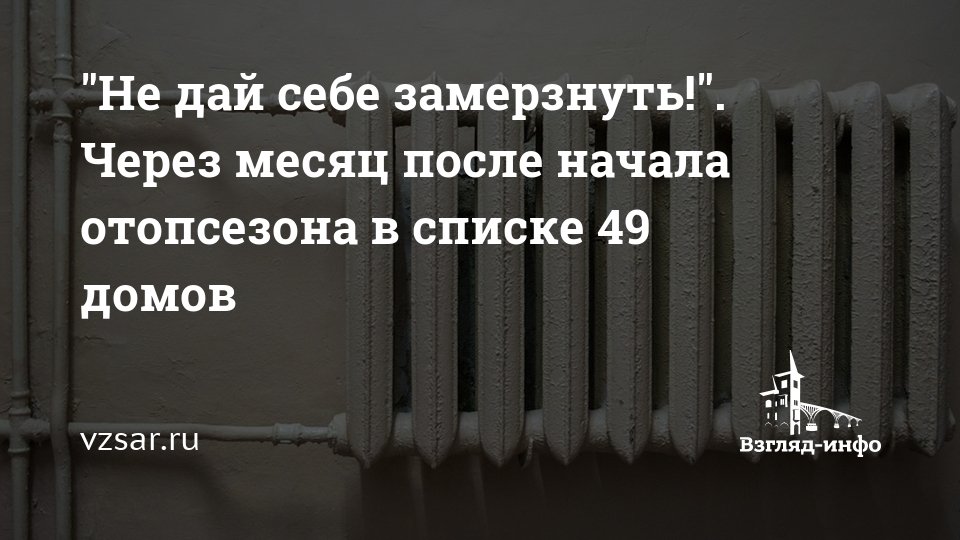 На сайте ИА "Взгляд-инфо" продолжается акция "Не дай себе замерзнуть!". При этом отопительный сезон в Саратове был объявлен еще 25 сентября – ровно месяц назад.