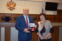 За значительный вклад в развитие и совершенствование судебной системы ветеранским знаком награждены судьи облсуда в отставке Татьяна Елистратова, Людмила Комарова, Василий Пархоменко, Евгения Парамонова, Светлана Панфилова, Вячеслав Пантелеев, Тамара Пункина, Наталия Ретунская, Александр Тарасов и Алексей Хурдаков.