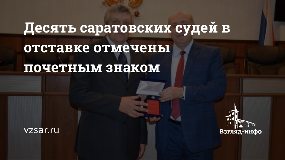 Церемония состоялась 25 октября. Председатель Саратовского областного суда Федор Телегин вручил знаки отличия судьям, пребывающим в почетной отставке.
