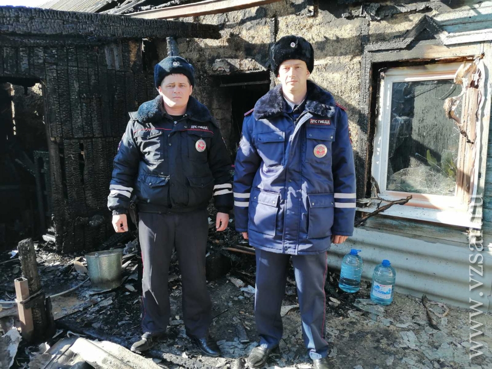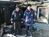 "В Саратовской области инспекторы ДПС ОМВД России "Дергачевский" младший лейтенант полиции Сергей Квашнев и прапорщик полиции Александр Цыганов в ходе патрулирования одной из улиц заметили возгорание частного дома.