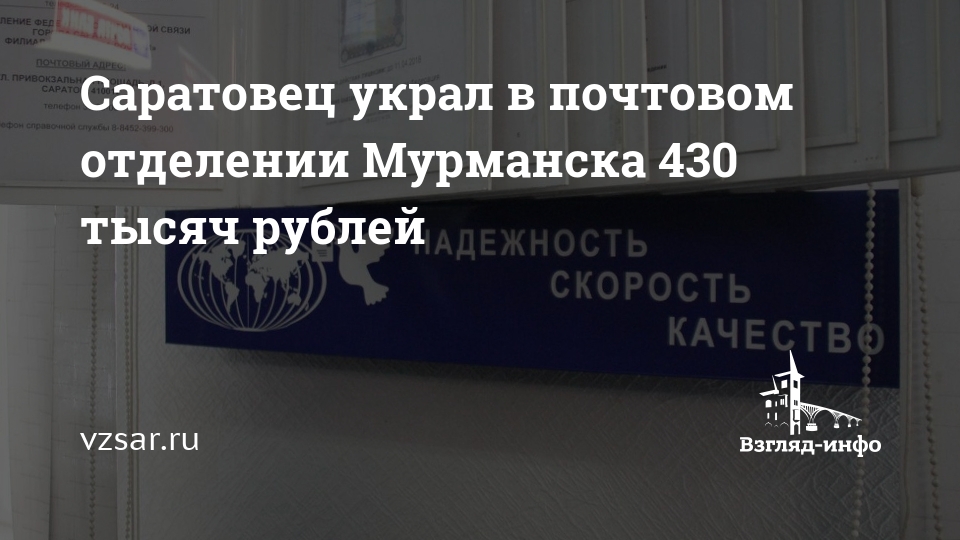 Саратовец украл в почтовом отделении Мурманска 430 тысяч рублей