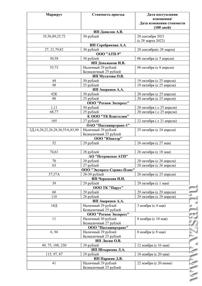 Согласно опубликованному мэрией расписанию, с 5 по 29 апреля стоимость проезда в автобусах увеличится еще на 29-ти маршрутах: