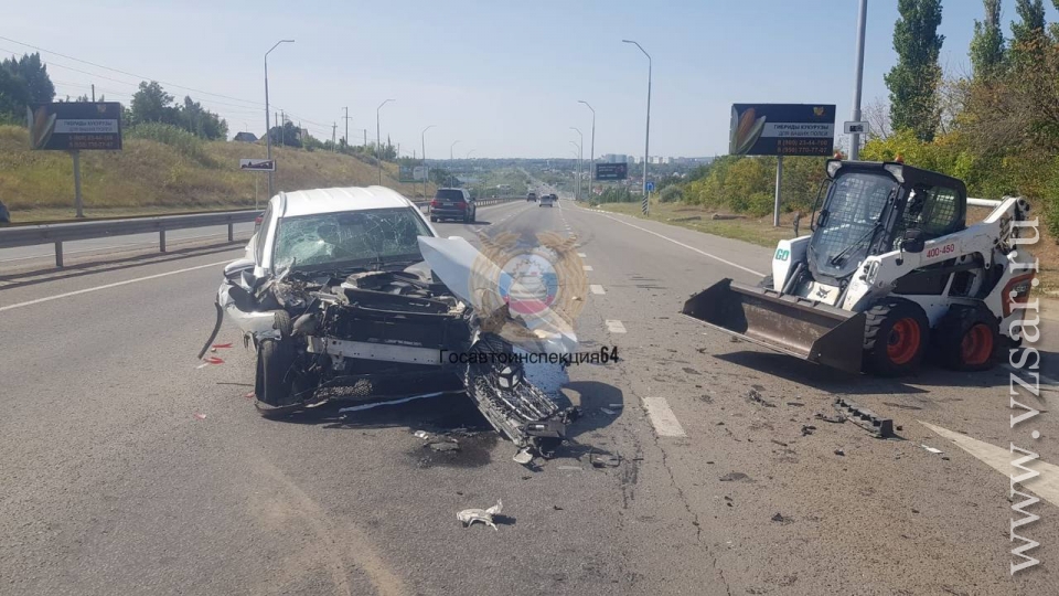 В Саратове бобкэт и Mercedes не поделили дорогу. В больнице оба водителя