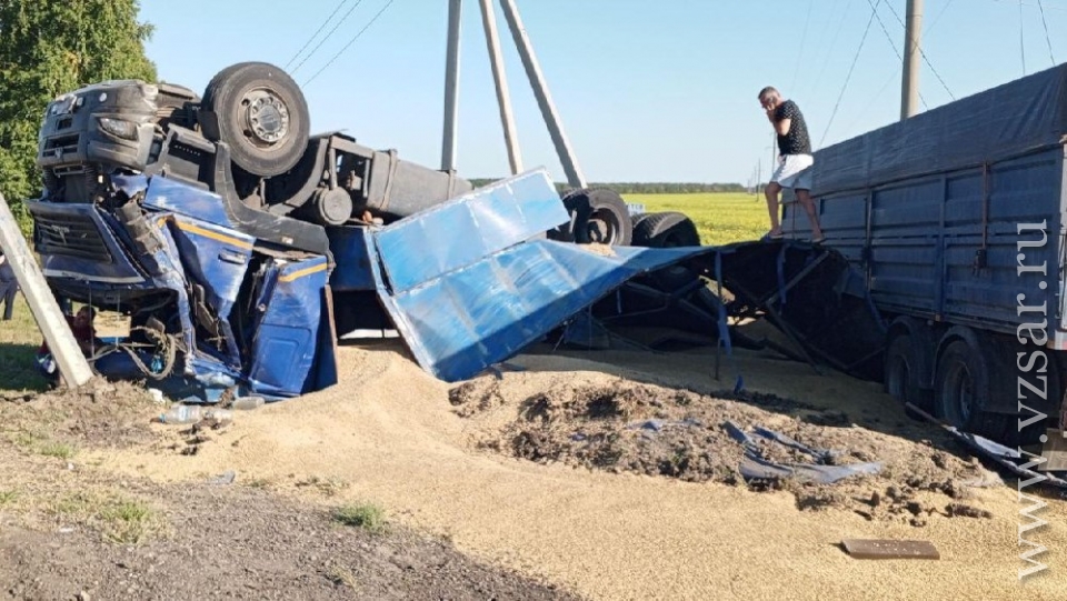 К счастью, сам водитель физически не пострадал. Однако тягач получил повреждения, а зерно, которое он перевозил, рассыпалось.