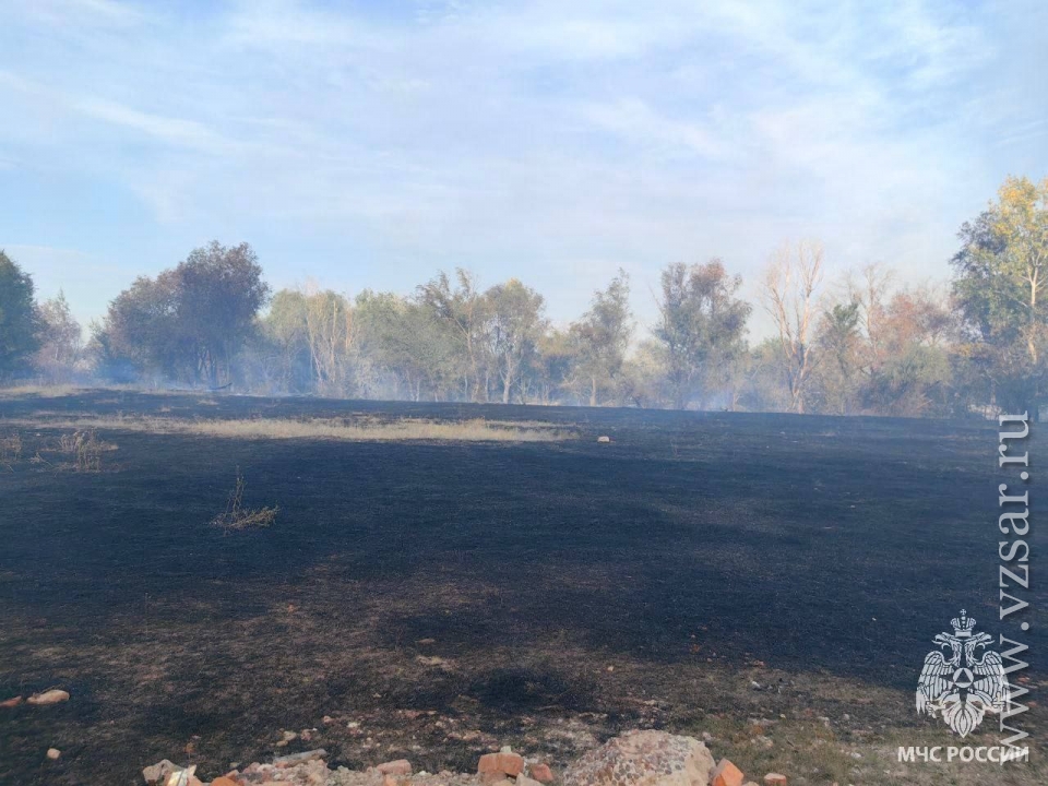 Под Энгельсом загорание травы привело к уничтожению дома и сараев