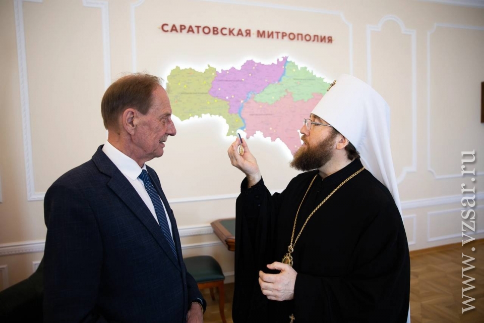 Сегодня в Саратовском епархиальном управлении состоялась встреча митрополита Саратовского и Вольского Игнатия с вице-мэром областного центра по городскому хозяйству и благоустройству Павлом Сурковым.