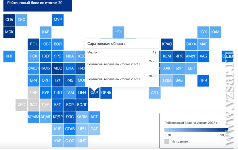 Саратовская область набрала 75,7 и вновь заняла 19-е место. В прошлом году было это же место, но 69,7 балла, а в 2021 году - 67,3 балла и 18-е место (по итогам 2020-го она была 18-й с 65,6 балла, а 2019-го - 34-й с 60,08 балла).