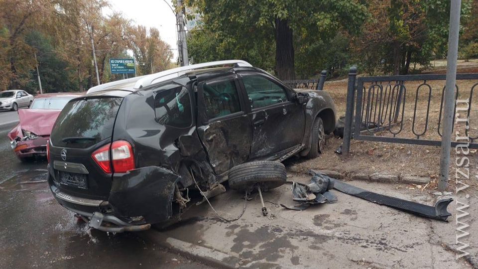 По предварительной информации, в 09.10 на пересечении Волгоградской и проспекта 50 лет Октября столкнулись "Нисан" и "Тойота". От удара первая машина съехала с дороги, пересекла тротуар и снесла часть ограждения зеленой зоны.