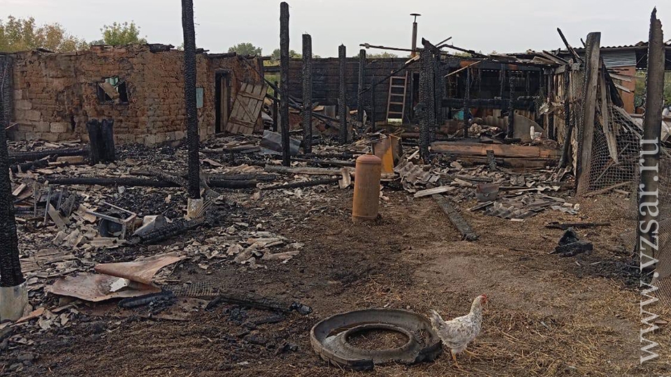 Огонь распространился на площади 93 кв. метра, уничтожив сарай с домашними животными. В результате погибли три свиньи и десять кур, местным жителям удалось спасти двух телят.