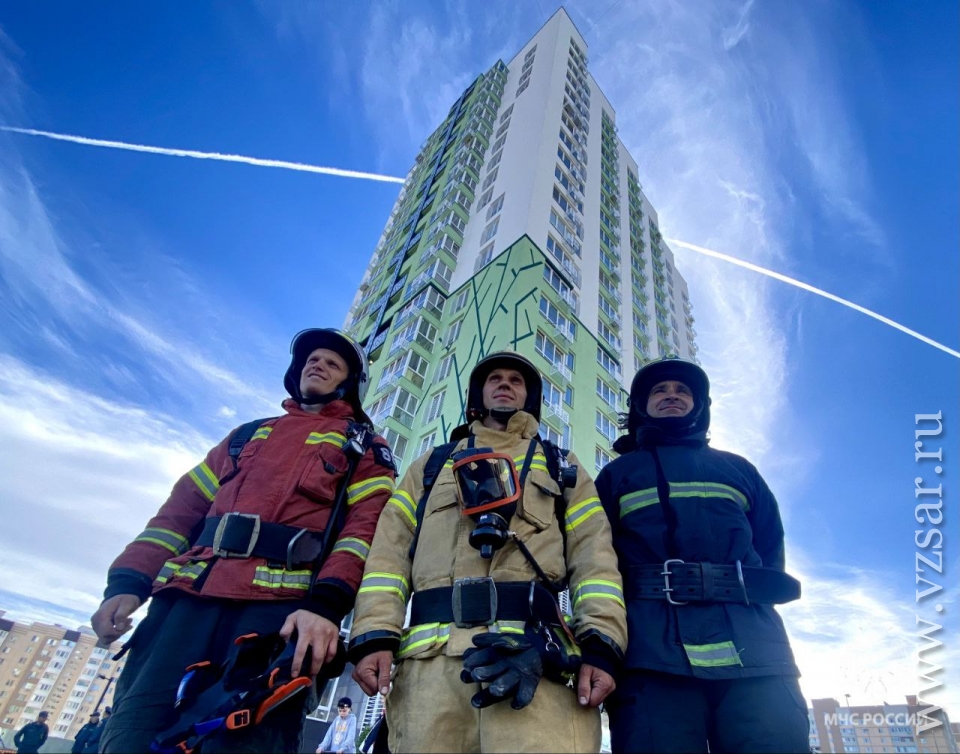 Сегодня в Саратове на проспекте Героев Отечества прошли соревнования "Вертикальный вызов" по скоростному подъему пожарных.