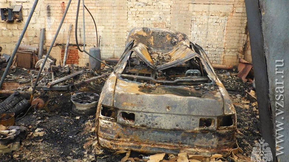 В 7.04 поступил сигнал о загорании двух частных гаражей на улице Восточной в поселке Колос. Внутри находились ВАЗ-2110 и "Киа". Машины полностью сгорели.