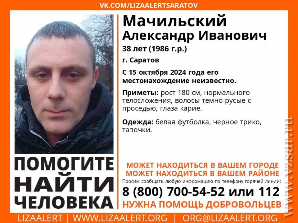 В Саратове пропал 38-летний Александр Мачильский. Об этом сообщает поисковый отряд "Лиза Алерт Саратов".