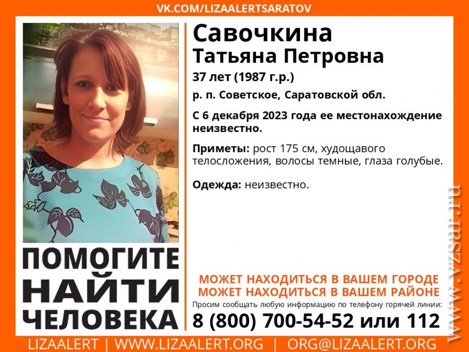 В Саратовской области пропала 37-летняя Татьяна Савочкина. Об этом сообщает поисковый отряд "Лиза Алерт Саратов".