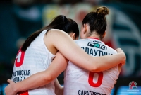 Ни в одной из трех партий саратовская команда не смогла набрать 20 очков. Меньше всего ей удался второй сет - 16:25. В двух остальных игровых отрезках итог получился одинаковым - 18:25.